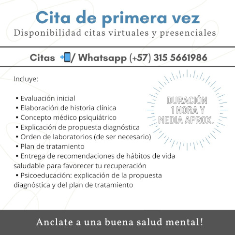 Las citas de primera vez tienen una duración aproximada de 1 hora y media. Esto es indispensable para hacer un análisis detallado de tu caso clínico que permita un diagnóstico acertado y la elaboración de un plan de tratamiento eficaz, basado en la mejor evidencia clínica disponible.